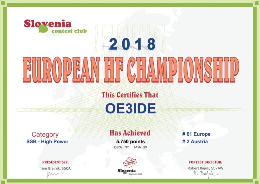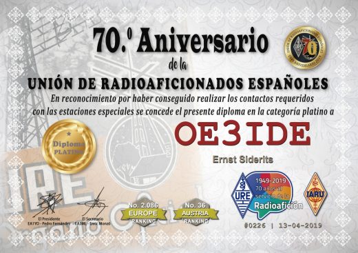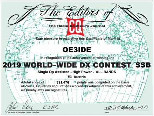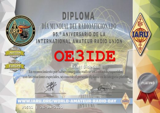 17. May 202030. December 2020 Ernstawards 95th anniversary IARU – URE platinum diplom #1 Austria SSB #6 Austria digital #5 Austria overall